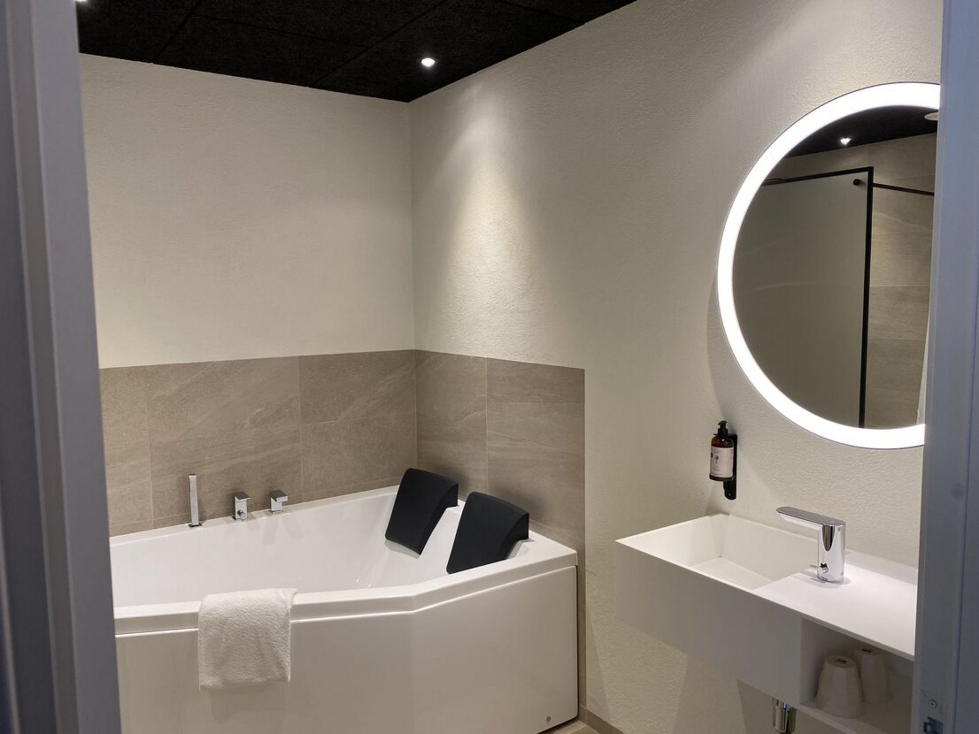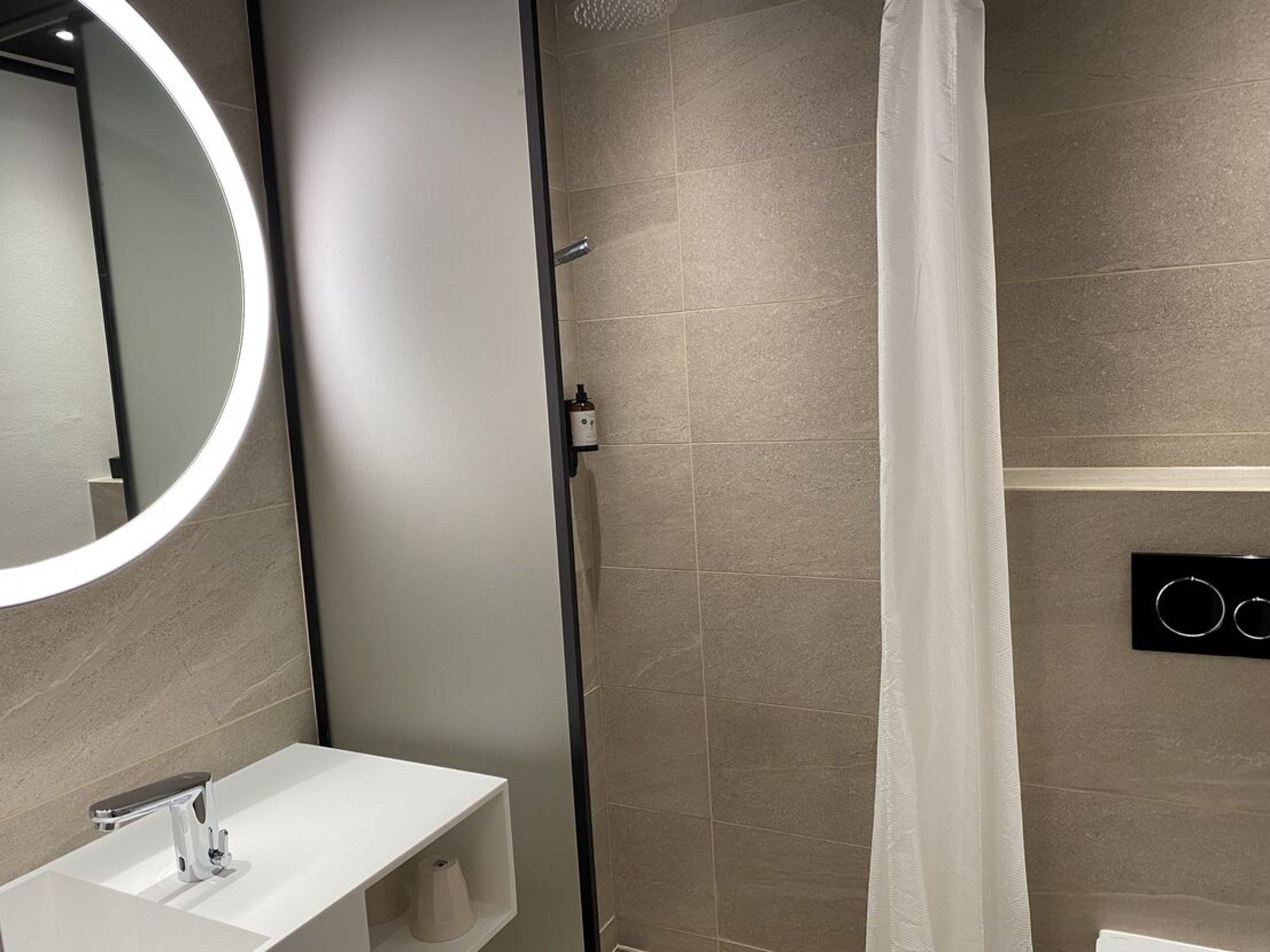 Med dobbeltseng (180 x 200 cm) samt sovesofa (160 x 200 cm). Der er både badekar og bruser, hårtørrer, fri WiFi, TV med Chromecast samt gratis økologisk kaffe/the.