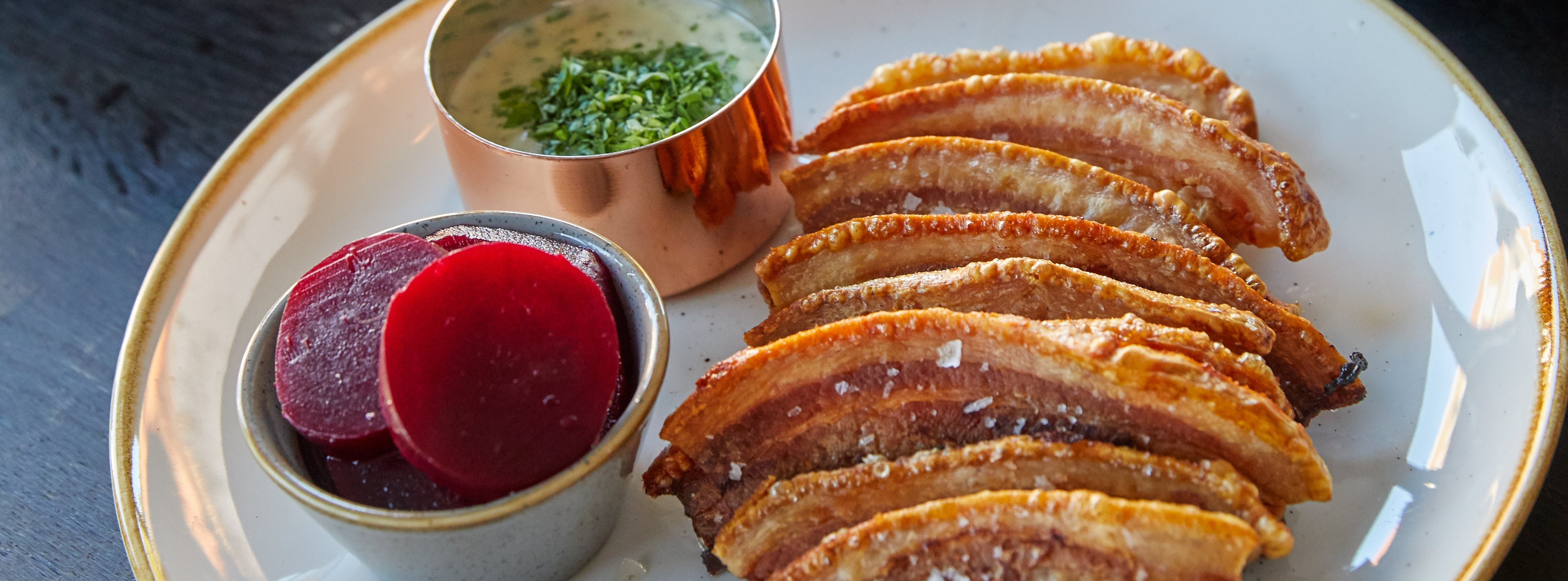 - Ad libitum stegt flæsk med persillesovs og kartofler